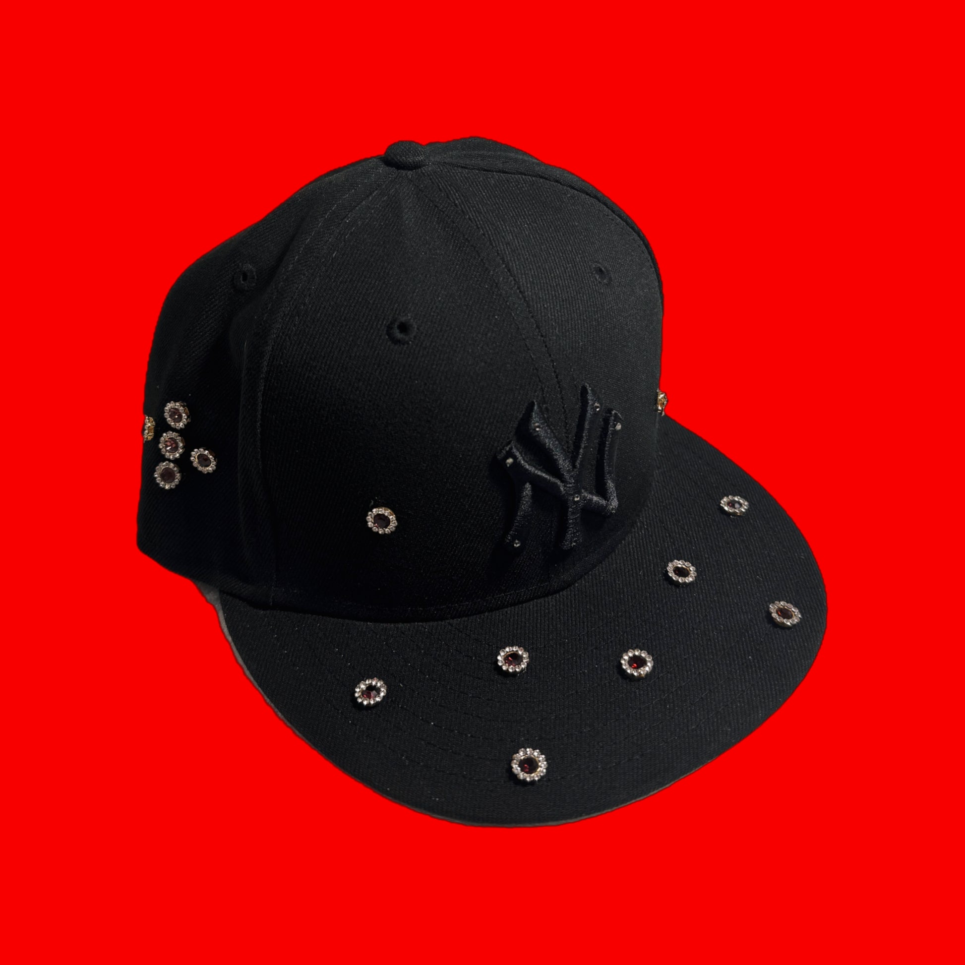 Gorra NEW ERA OFICIAL intervenida a mano con bordados e incrustaciones de pedrería, un sello distintivo del estilo de SANACIÓN STUDIOS.